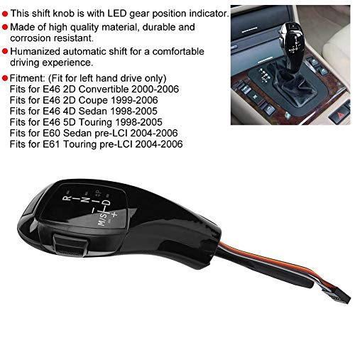 Montaggio - Diversamente dal precedente pomello del cambio automatico, questo tipo di pomello del cambio elettronico è equipaggiato per le versioni successive della per BMW Questo pomello del cambio è particolarmente adatto per E46 E60 E61 (adatto solo per la guida a sinistra).facile da installare, perfetto per la tua auto originale.