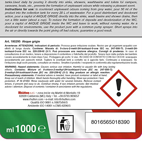 Liquido chimico ad azione detergente e s a n i f i CA n t e, specifico per la manutenzione dei serbatoi delle acque grigie
