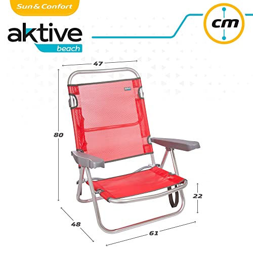 AKTIVE 53970 - Sedia Pieghevole Multiposizione Alluminio Beach 108x60x78 cm - Rosso