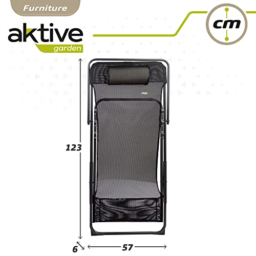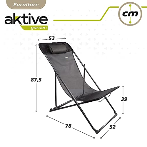 AKTIVE 61102 Sedia a Sdraio Pieghevole e reclinabile, Metallo Textilene, Nero, Taglia Unica