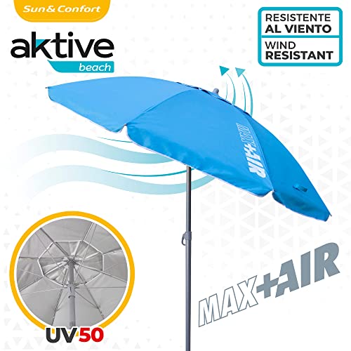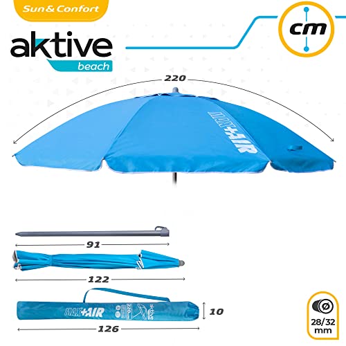 Ombrellone spiaggia antivento Max Air colore blu mare Ø220 cm con manico inclinabile e regolabile in altezza Ø28/32 mm Aktive Beach