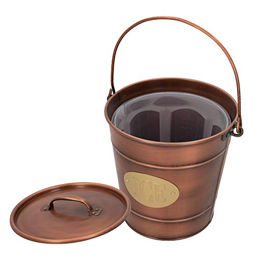 Aktive 79013 79013-Secchiello per Ghiaccio con Coperchio e Manico Finitura Rame, Acciaio zincato