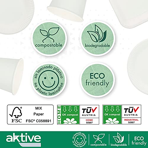 Aktive - Stoviglie usa e getta, compostabili, biodegradabili, 120 pezzi, 20 persone, stoviglie ecologiche, piatti tovaglioli e bicchieri usa e getta, senza BPA, origine vegetale (71346)