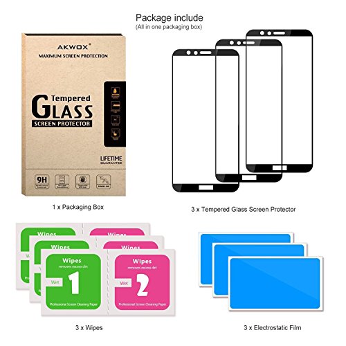 Nella confezione: 3 Pellicole in vetro temperato per Huawei Honor 7X, 3 Sticker per la rimozione della polvere (adesivi), 3 Salvietta (sgrassante) e salvietta asciugatura.