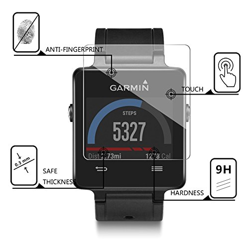 Pellicola vetro temperato compatibile per Garmin Vivoactive,la pellicolo protettiva è in vetro e consente di mantenere la sensibilità originale del vostro schermo.