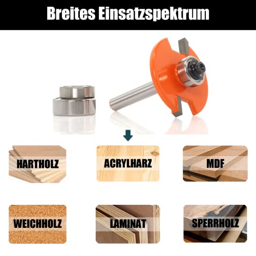 Dimensioni adatte: fresa per piegatura con codolo da 8 mm, fresa per scanalature a disco, diametro: 37,2 mm, altezza di taglio: 4 mm, con 3 cuscinetti regolabili. Le dimensioni del cuscinetto sono 12,7 mm/16 mm/19 mm, la profondità di taglio corrispondente al cuscinetto è: 12,3 mm/10,6 mm/9,05 mm. Una varietà di opzioni per soddisfare le vostre esigenze.