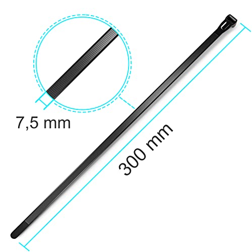 ALAMBUS Fascette per cavi richiudibili, 300 mm x 7,5 mm, 100 pezzi, nero, nylon, fascette riutilizzabili, riutilizzabili, sostenibili e rispettose dell'ambiente