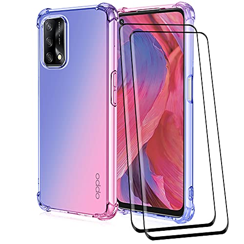 ALAMO Cover Pendenza Colorato per Oppo A74 (4G Version), Custodia Traslucido Silicone TPU con Antiurto Bumper [ con Pellicola Vetro Temperato ] - Rosa-Blu