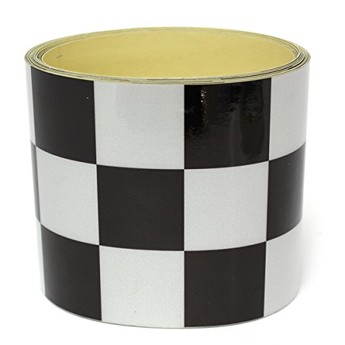 Alamor Autoadesivo Del Carro Armato Della Bici Del Motociclo Dell'Automobile Del Nastro Della Decalcomania Del Vinile Della Bandiera A Quadretti Bianca Nera A 3 Pollici