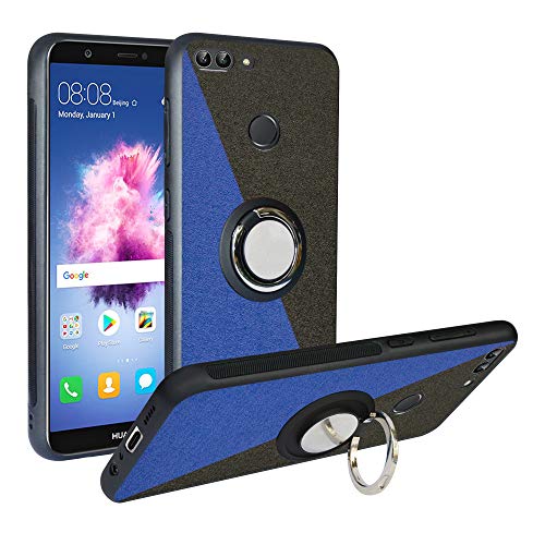 Alapmk Cover per Huawei P Smart 2018, [Pattern Design]con Regolabile 360 Magnetica per Auto, Morbido TPU Protettiva Resistente Ai Graffi Case Cover per Huawei Enjoys 7S,Blue/Black