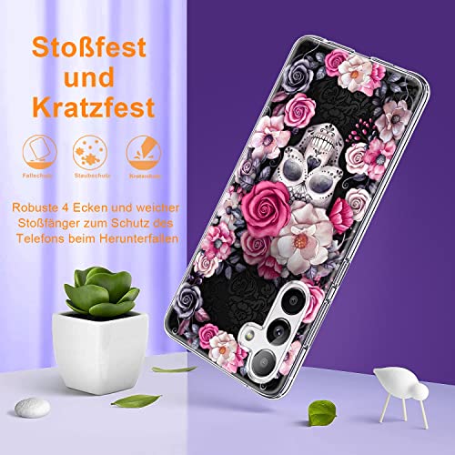 Materiali di alta qualità: custodia per Galaxy A34 5G con teschio floreale realizzata in silicone TPU trasparente di alta qualità. Custodia trasparente per Samsung Galaxy A34 5G, flessibile, morbida e leggera, antigraffio, antiurto, mantiene il vostro smartphone Samsung Galaxy A34 5G pulito e anti-caduta.