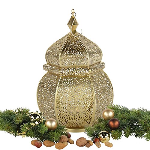 Albena shop 71-4956 Teja Lanterna di Ferro orientali 35 cm Lanterna Antivento Metallo (Oro)
