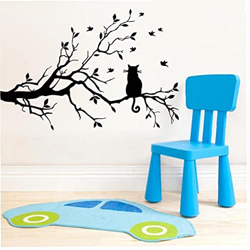 ST4U Cat on Long Ramo di Albero Adesivi per Pareti Animali Gatti Camera Decalcomania di Arte Bambini Decorazione del Vinile di Arte Murale