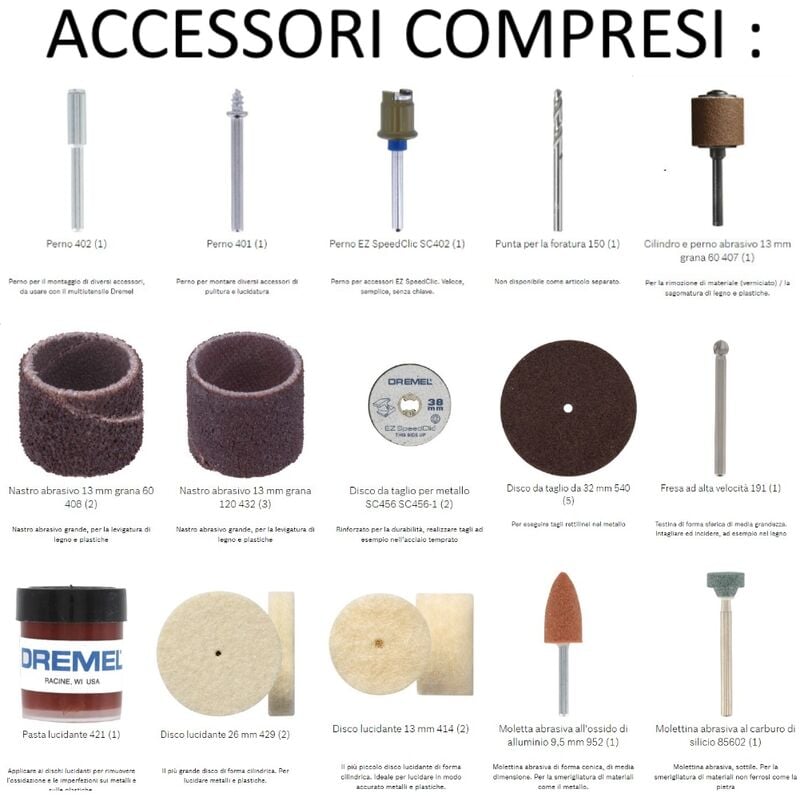 DREMEL 3000 è il perfetto multiutensile versatile, ideale per tutti coloro che amano svolgere lavori dettagliati come taglio, levigatura, incisione, ecc ..., sia occasionalmente che regolarmente . Impugnatura confortevole con una presa leggera e maneggevole, con il nuovo innovativo cappuccio Ez Twist grazie al quale non ce più bisogno della chiave per stringere o allentare la Pinza durante il cambio degli Accessori . Motore da 130 Watt per presatzioni Ottimali e velocità variabile da 10.000 fino a 33.000 giri al minuto La confezione comprende il multiutensile Dremel, 25 accessori, l'Albero flessibile il Manuale di istruzioni e un DVD informativo . Albero Flessibile: Albero Flessibile DREMEL che trasforma il tuo multiutensile Dremel in un utensile compatto, leggero, confortevole, ideale per l'incisione, la lucidatura e l'intaglio di alta precisione . L 'impugnatura morbida ti permette di tenere l'utensile come una penna per periodi di tempo prolungati senza affaticarti .