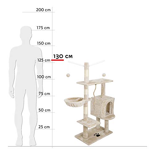 Albero per Gatto con Graffiatoio Cuccia Giocattolo Gatti Parco Giochi Tiragraffi in Sisal Naturale 130 x 60 x 35 cm (Colore Beige Birba 30059)