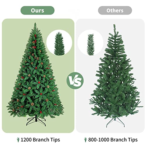 Albero di Natale 210cm - CACOE Albero di Natale Artificiale 1200 Punte di Rami, Abete Artificiale con Supporto in Metallo Stabile e Pieghevole, Realizzato in PVC Ignifugo
