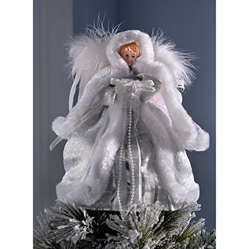 WeRChristmas-Decorazione per albero di Natale, con angelo con ali, tessuto, bianco/argento, 25 cm