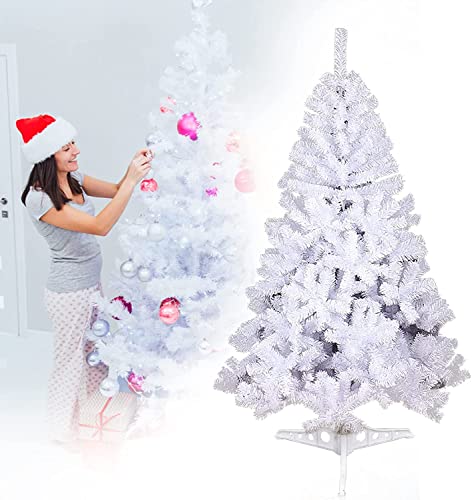 Albero di Natale Artificiale Bianco 120 cm,200 Rami,PVC Ago di Pino Effetto Realistico,Decorazione di Natale,Base Metallica