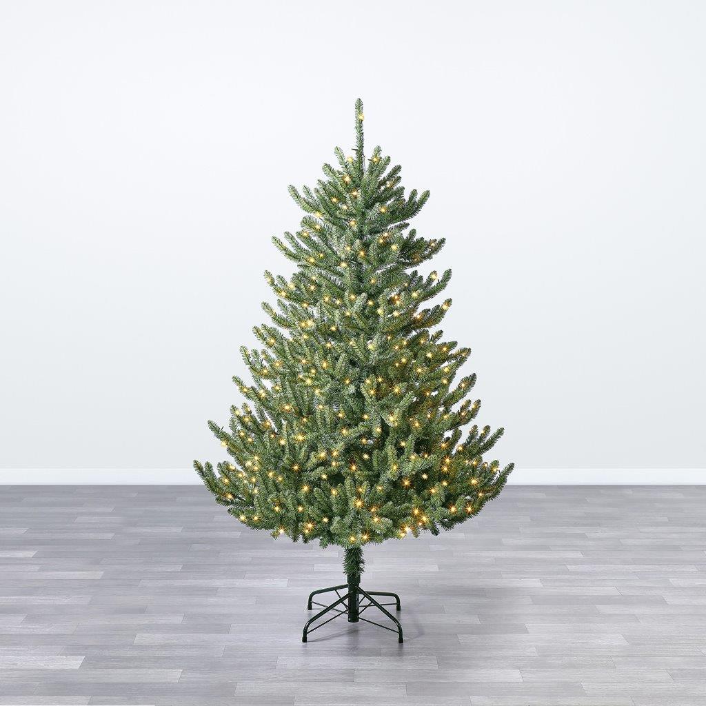 Alberi con luci in multi-materiale dal diametro di 117cm, 1104 rami con apertura a ombrello. Base in metallo pieghevole.. montaggio semplice e rapido. minimo ingombro quando smontato. Luci già fissate all'albero