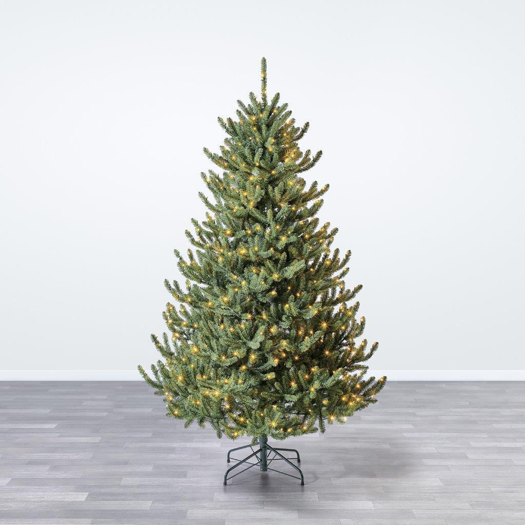 Alberi con luci in multi-materiale dal diametro di 137cm, 1632 rami con apertura a ombrello. Base in metallo pieghevole.. montaggio semplice e rapido. minimo ingombro quando smontato. Luci già fissate all'albero