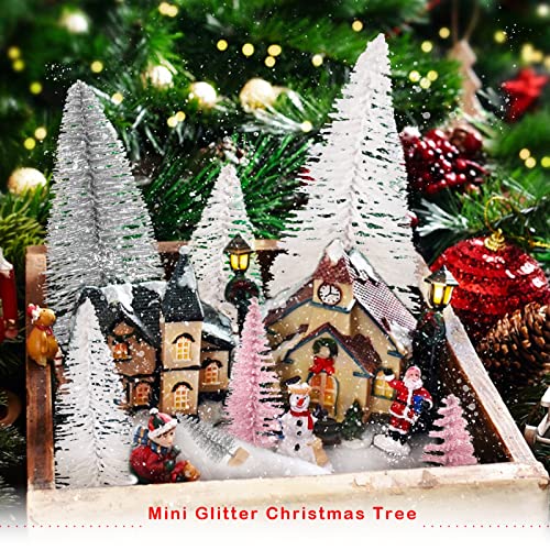 Materiale: i mini alberi di natale sono realizzati in plastica e legno, piena di brillantini argento, è molto vivace.