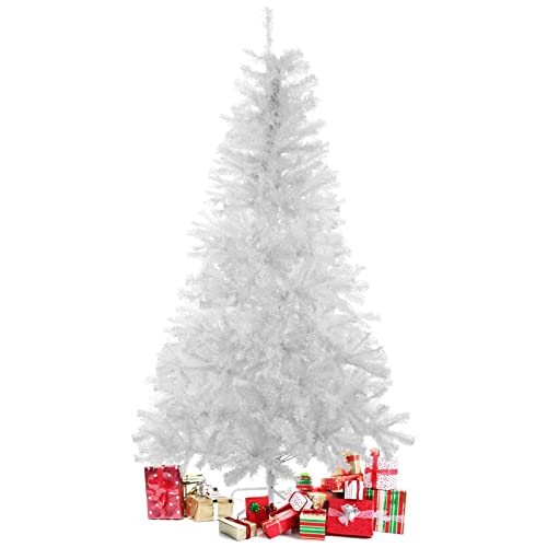 Albero di Natale Artificiale 180 cm, Albero di Natale con 800 Rami in PVC, Base Metallica, Materiale Ignifugo, Facile Montaggio per Decorazioni Natalizie, Bianco