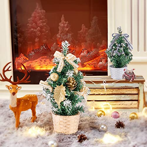Mini Albero di Natale artificiale, 3 pezzi da 20 cm Mini Albero di Natale da Tavolo con Luci a LED, Mini Albero di pino Natalizio con Palline Ornamentali Bowknot per la Decorazione di Natale