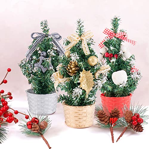 GRANDE DECORAZIONE DI NATALE: Il pacchetto include 3 pacchi mini albero di Natale da 8 pollici/ 20 cm di colore diverso, oro, argento e rosso. Ognuno viene fornito con base ad albero dello stesso colore, ornamenti, pigna e fiocco. La bella forma è sicuramente un'ottima decorazione da scrivania per il prossimo giorno di Natale!