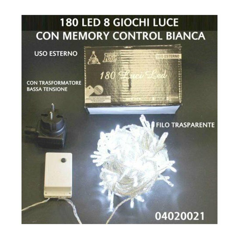 Luci albero di natale catena luminosa per esterno 180 Led /10,5 metri / 8 funzioni / luci bianche/ filo trasparente