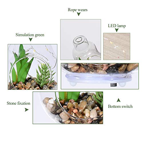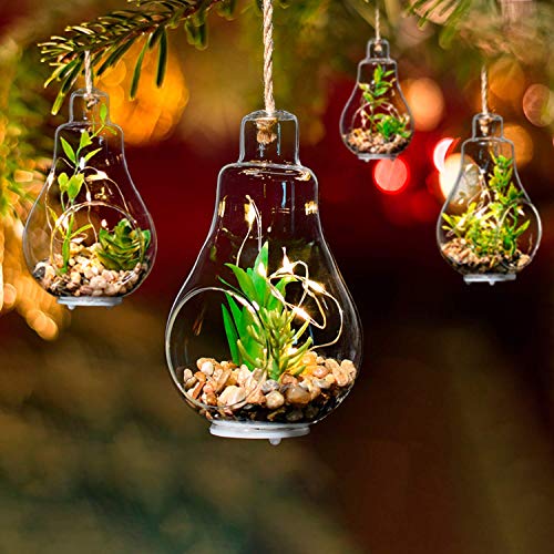 Luci Albero di Natale Decor da 4 Pz,Succulente Piante Artificiali nel Trasparente Fioriere Vaso Vetro Lampadina Terrario con LED Design Bonsai per Decor Matrimonio Casa Giardino Ufficio,con Corda