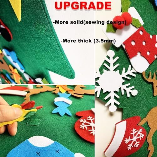 Albero di Natale fai da te, albero di Natale in feltro per bambini, bambini con 32PCS ornamenti rimovibili, appendere decorazione decorazione per casa porta muro (100 x70cm)