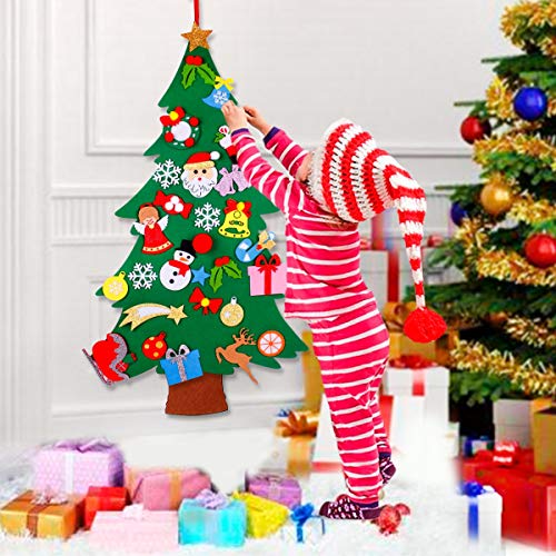 AMORE ORNAMENTI COLORATI - 1 pezzo di albero di Natale in feltro fai da te con 25 pezzi di ornamenti natalizi in diversi colori e forme, fiocco di neve, pupazzo di neve, Babbo Natale, cervi, caramelle, calzini natalizi, stelle, campane e scatole regalo, ecc. Tutto è essenziale per il Natale. gli ornamenti sono favolosamente lucenti ei bambini sono liberi di attaccare gli ornamenti natalizi all'albero.