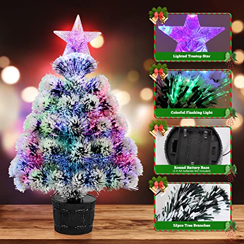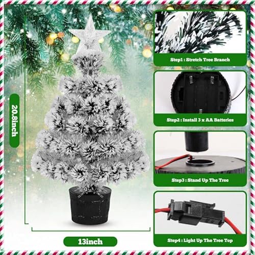 ✅Albero in fibra ottica artificiale pre-illuminato: il mini albero di Natale in fibra ottica bianca come la neve è alto 22 pollici e con 52 rami di alberi interi. Questo bellissimo albero con le sue fibre ottiche che cambiano colore e una stella splendidamente illuminata in cima che renderà le tue festività natalizie allegre e luminose!