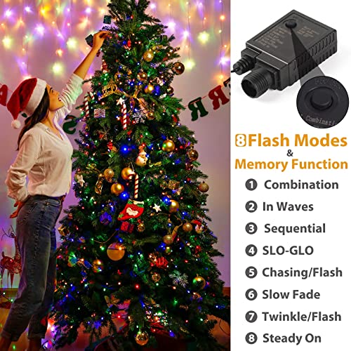 Luci Albero di Natale a Forma Diamante, GlobaLink 1000LED 100M Luci Natale Esterno IP44 Impermeabile, Luci Natalizie Esterno 8 Modalità Luce Decorazioni Natalizie,Patio,Matrimonio con Bobina,50 Flange