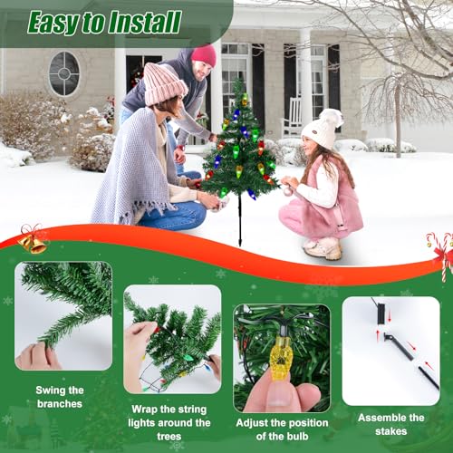 【Albero di Natale Solare 4IN1】Albero di Natale 4IN1 aggiornato con luci a stringa solare, ogni albero con 20 luci natalizie a LED C6 colorate alimentate dall'energia solare. Con robusto paletto in ferro battuto a 7 forme, altezza dell'albero 29,5 pollici, rami realizzati con materiali di alta qualità, buona durata. I rami sono forte e durevole e può sopportare il peso di vari ornamenti.