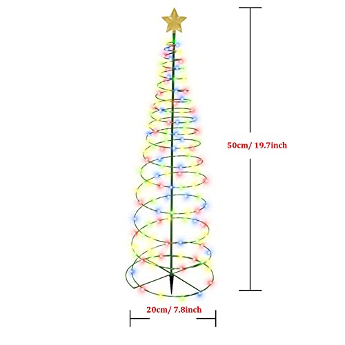 Albero di Natale A Spirale Lampade A Stringa A LED Alimentate A Batteria Solare, 50 LED, Luci di Palo Natalizio in Metallo Illuminazione per Percorsi da Giardino, Altezza 50 Cm