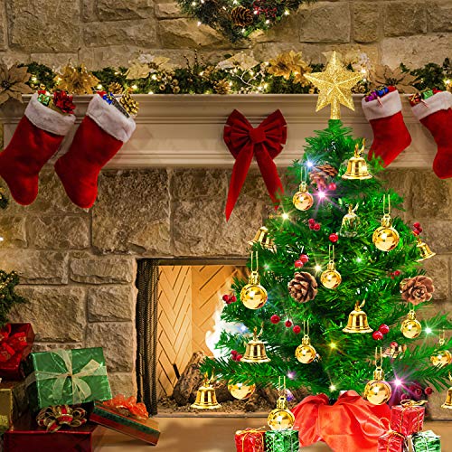 Piccolo albero di Natale fai da te: il mini set da tavolo contiene 1 x albero di Natale artificiale da 50 cm, ornamenti tra cui 1 x 5 m, 12 campane dorate, 12 bacche dorate, 30 bacche rosse, 4 pigne, 5 piccole scatole regalo e 1 x albero a stella dorata, 1 base in legno, 1 x tessuto rosso. Hai tutto il necessario per fai da te con i tuoi bambini.
