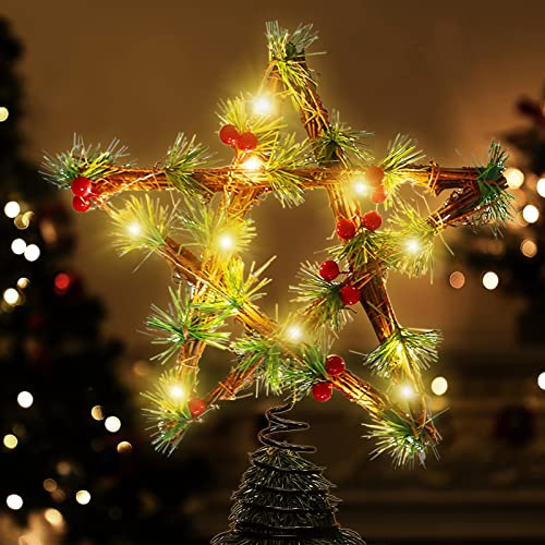Albero di Natale Topper, 29 x 25.5 cm Puntale Stella Albero Natale con Luci LED, Decorazioni Natalizie per Albero di Natale Naturale 3D a Forma di Stelle in Fujijo per Decorazioni per la Casa