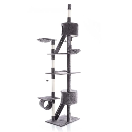 Albero tiragraffi 240-260cm grigio Modello a soffitto Sisal Con nicchie e amache