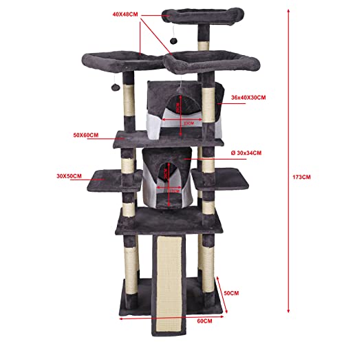 Albero tiragraffi grigio/bianco con sisal 170cm Tiragraffi con graffiatoio cucce e palline Per gatti