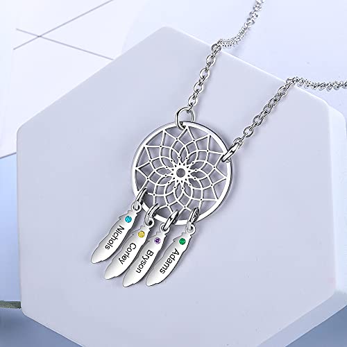ALBERTBAND Collana con nome personalizzato Ciondolo Dream Catcher Catena Girocollo Incisione 1-7 Nomi per donna Collana Dream Catcher con pietre del parto (4 names)