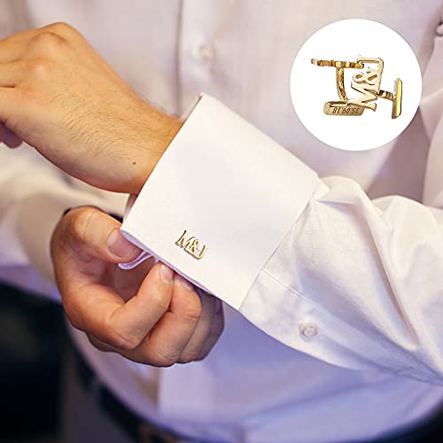 Albertband Gemelli Personalizzati da 2 Pezzi con Lettera di Iniziali Gemelli Personalizzati con Nome Arabo Gemelli con Data di Matrimonio dello Sposo per i Padri Argento/Oro/Nero/Rosa (#Iniziali)