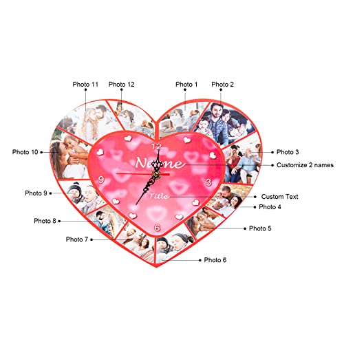 ALBERTBAND Orologi da Parete Orologio da Parete Personalizzato con Foto del 9/12/13 Orologio con Nome Inciso con Data per la Decorazione di Nozze della Famiglia della Mamma (#5-12Foto)