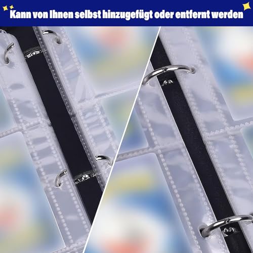 【MATERIALI DI QUALITÀ】- La copertina dell'raccoglitore carte è realizzata in pelle PU di alta qualità. Il dell'raccoglitore di carte collezionabili incorporato e la copertina dell'album da collezione sono realizzati in materiale impermeabile, il design della corda di trasporto è facile da trasportare, protegge le carte dallo sbiadimento. Il raccoglitore carte magic di 3 solide clip O-ring in acciaio inossidabile, che consentono di aggiungere o rimuovere raccoglitore carte album carte.
