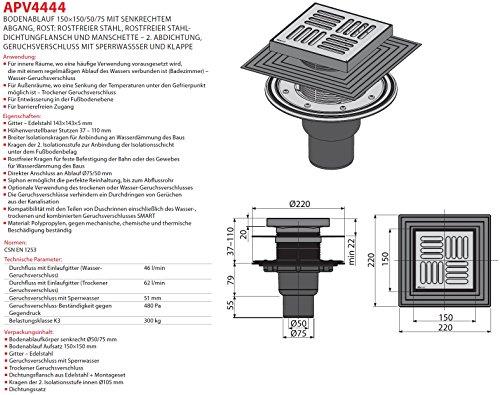 Alcaplast APV4444 Scarico a Pavimento, Cromo