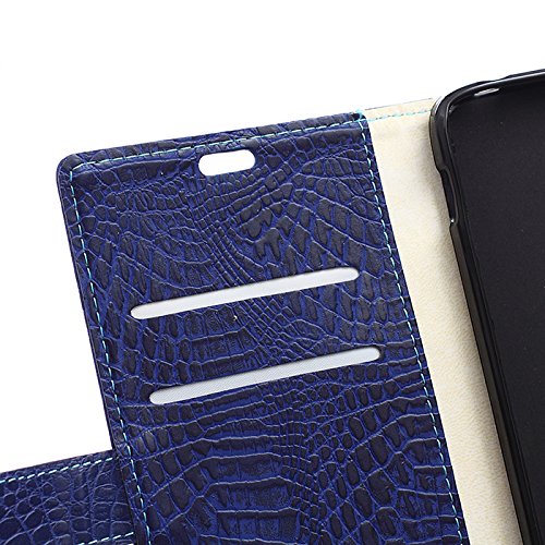 Alcatel OneTouch Idol 3 Custodia Crocodile Grain PU Leather Flip Stand Case Cover Wallet Card Holders with Magnetic Closure for Alcatel OneTouch Idol 3 (5.5 inch) (Dark Blue)