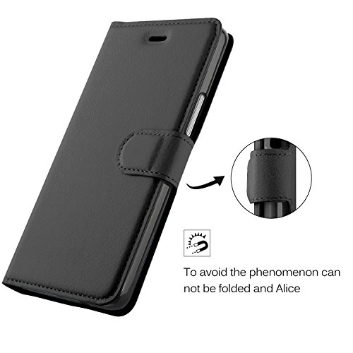 KuGi Alcatel One Touch A3 XL Custodia Lussuosa PU Cover Custodia Protettiva Portafoglio da Mano per Alcatel One Touch A3 XL Smartphone (Nero)