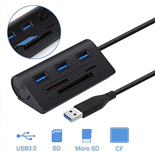 Alcey USB 3.0 Alimentato Tramite Bus Hub a 3 Porte SD/TF Card Reader Combinato per iMac, MacBook Air, MacBook PRO, MacBook, Mac Mini, PC e Computer Portatile,Nero