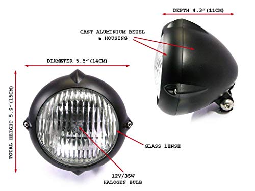 Alchemy Parts 5.5" Moto Faro 12V/35W in Nero Opaco per Project Moto Custom
