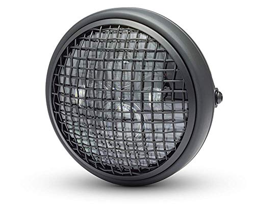 Alchemy Parts Moto Proiettore Faro 7.7" LED con Griglia Rete - Nero Opaco 12V 66W per Cafe per Moto & Scrambler - Leggero